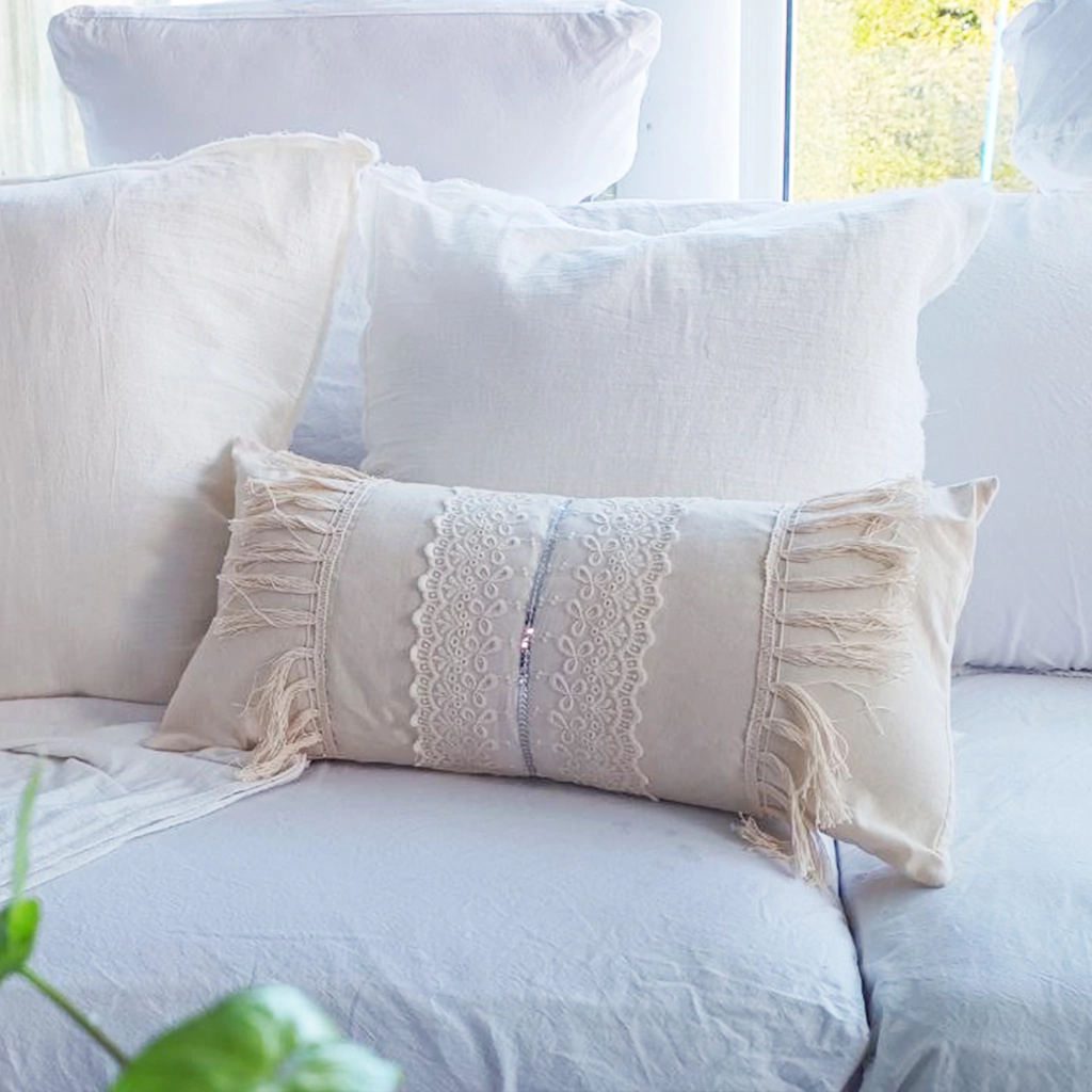 SET X4 ALMOHADONES COMBINADOS (Mix boho encaje & gasa lisa natural)